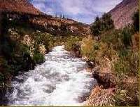 Route 41 towards Vicuna going alongside the banks of the river Elqui