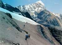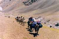 We travel in the shadow of glacier-capped Andean peaks -such as Mercenario