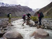 We pick up you at your hotel and we leave Santiago heading to the beginning of Cajón del Maipo Valley, we will arrive to Lo Valdés, the last small mountain village in the area after 3 hours of good route driving. Lo Valdes is at about 2000m and here we head towards the amazing, full of story Refugio Aleman. We have lunch and then we go for a short walk in the surrounding areas to help us in our acclimatization process. We have dinner and spend the nigth at the hut at 2000m. Refuge (L, D)
