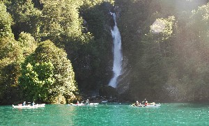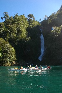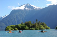 We paddle down to the end of Comau Fjord to Leptepu, passing by stunning snow-capped peaks on our way to a secluded corner in a setting of plunging waterfalls and virgin forests. We also see a lagoon, teeming with wildlife, which we can reach by kayak at high tide. In the afternoon we return to Porcelana and, of course, we don't fail to go for another long soak in our beautiful hot spring.