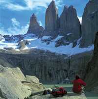 Torres del Paine with their world-famous granite spires and the two-colored "horns" rearing up almost vertically from the Patagonian plain, surrounded by emerald-green and cobalt-blue lakes, make up one of the most stunning sights anywhere. Well-kept trails and a string of shelters make it easy to reach its glaciers, enjoy the fauna -which includes guanacos, pumas, rheas (a sort of poor-man's ostrich), wild geese, foxes and condors, among others-, the hauntingly beautiful Magellanic forests, with gnarled, bearded trees, the waterfalls, the hidden ponds... and to attempt the mother of all treks: the grand tour around the massif, which takes at least four days and quite a bit of stamina.