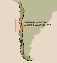 This region combines bustling Santiago, the seat of government, with placid little towns dotting the countryside and superb ski resorts just one hour from downtown Santiago. Narrow valleys that wind deep into the Andes, vineyards, thermal springs and a national park high up in the mountains are some of its attractions.